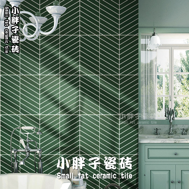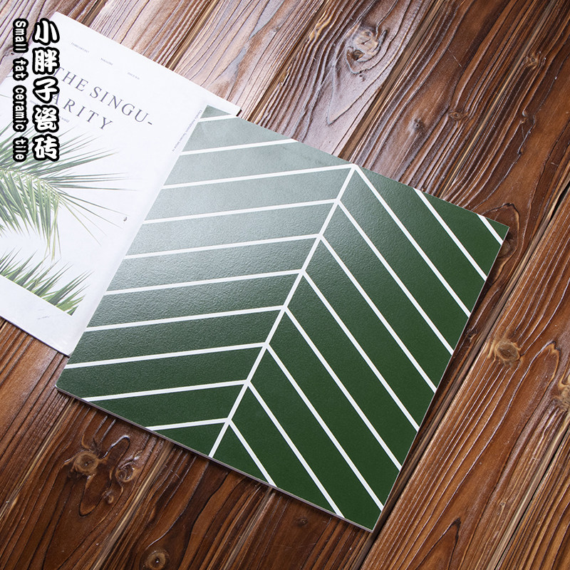 Nordic Ink Green Fish Bone Flower Brick Makeup Room Wall Brick Kitchen Magnetic Brick Dining Hall Anti-Slip Floor Tile 300X300 Flower Sheet