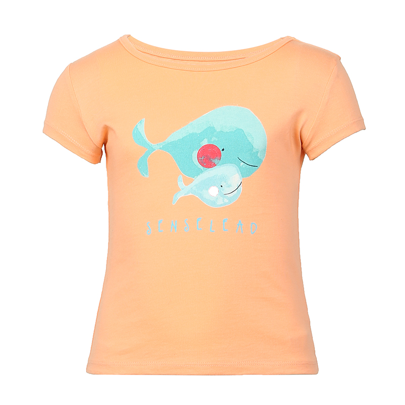 Pictured outdoor spring Summer Senselead girl round collar short sleeve T-shirt little girl printed sports casual T-shirt