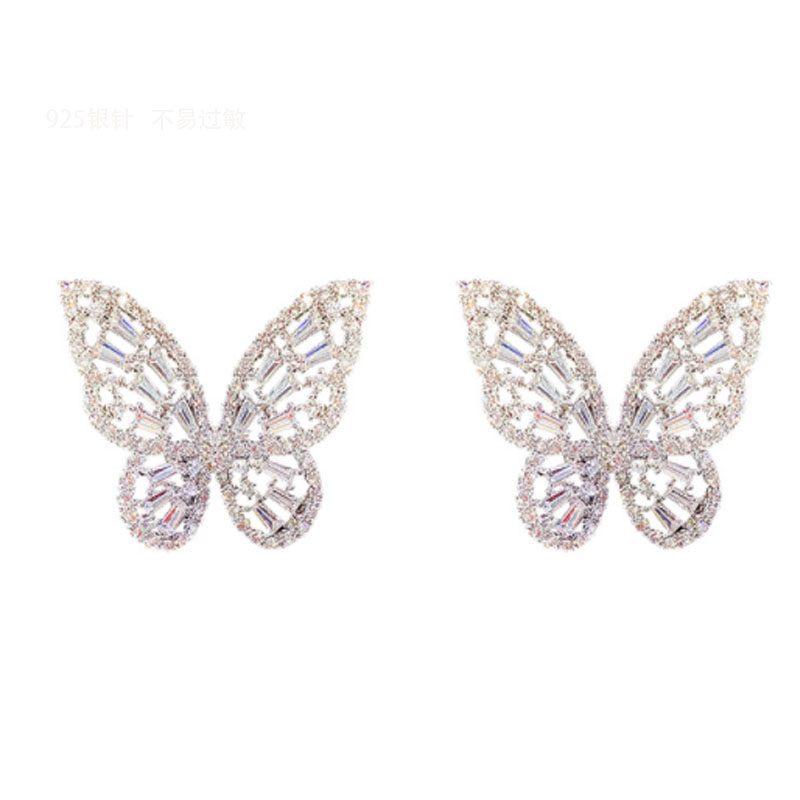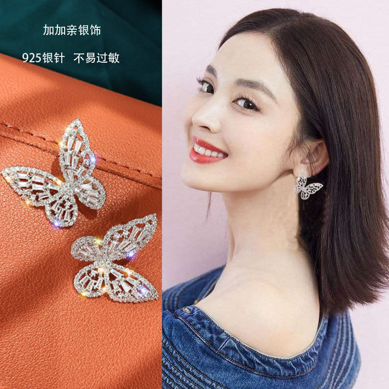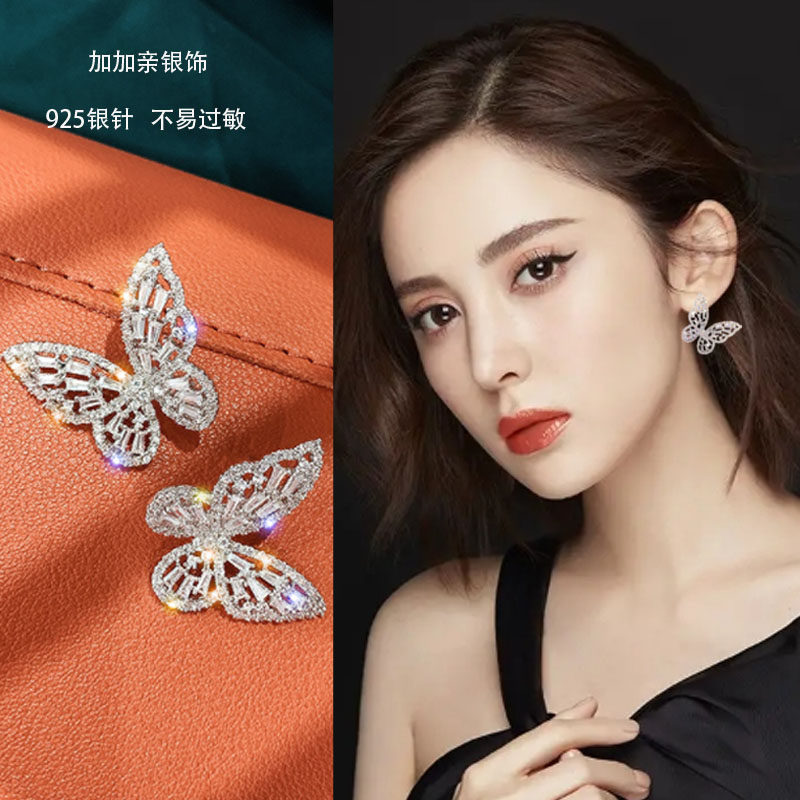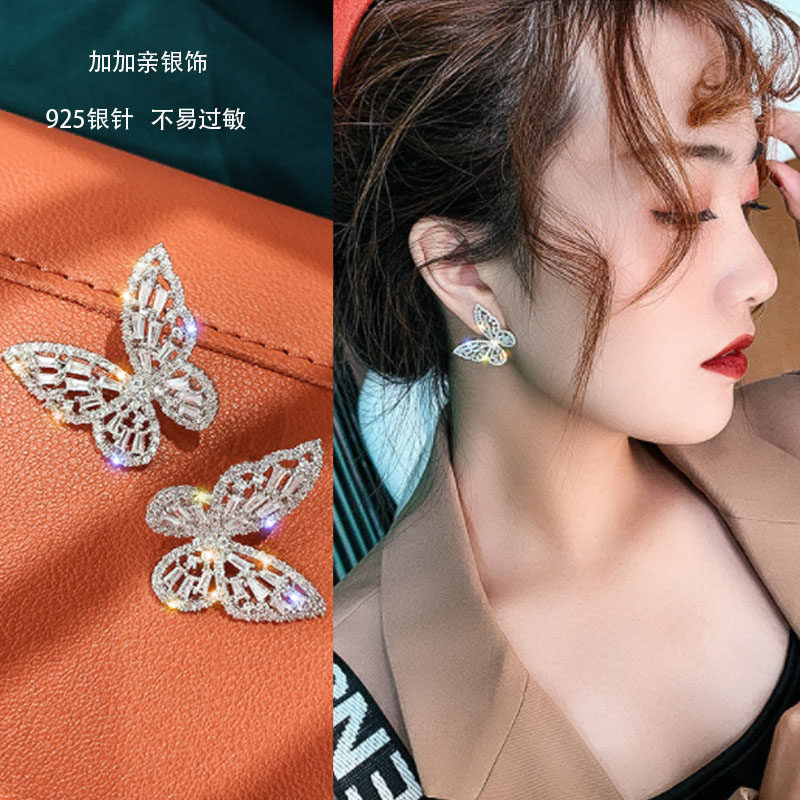 Butterfly s925 silver needle ear needle female pure silver anti-allergy ear pendant Korean temperament exaggerated earrings female 2022 new wave