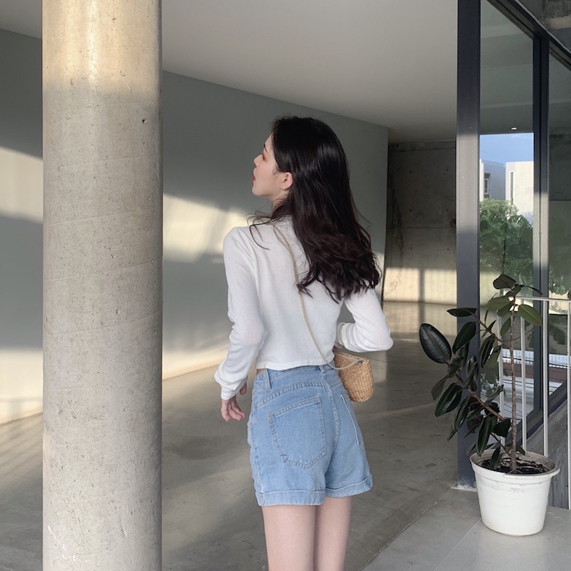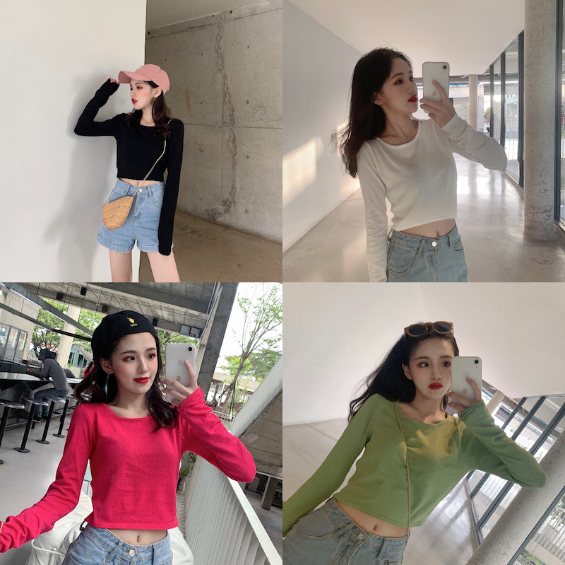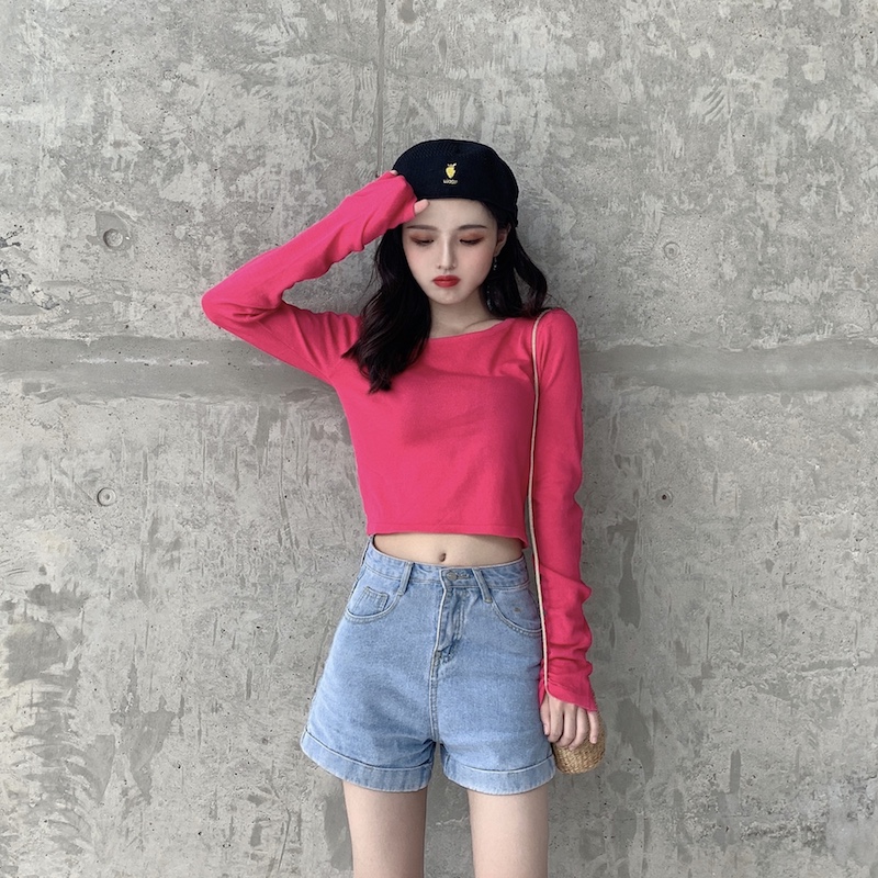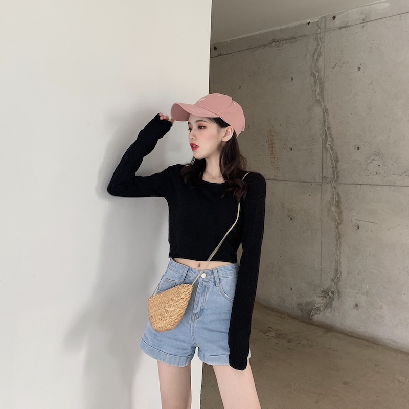 Spring Dress New Vintage Pure Desire T-shirt Lady Round Collar Short slim knit Long sleeves Nets sunscreen blouse