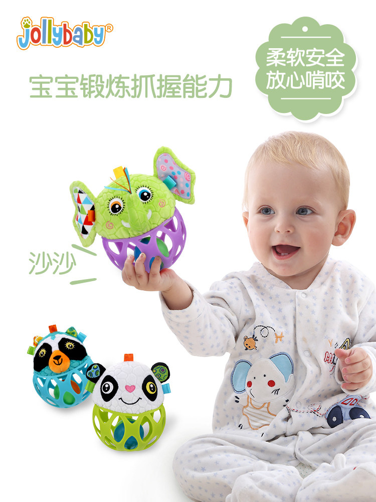 jollybaby baby hand grip ball buttonhole dongle toy ball newborns haptic feel integrated training puzzle soft rubber ball