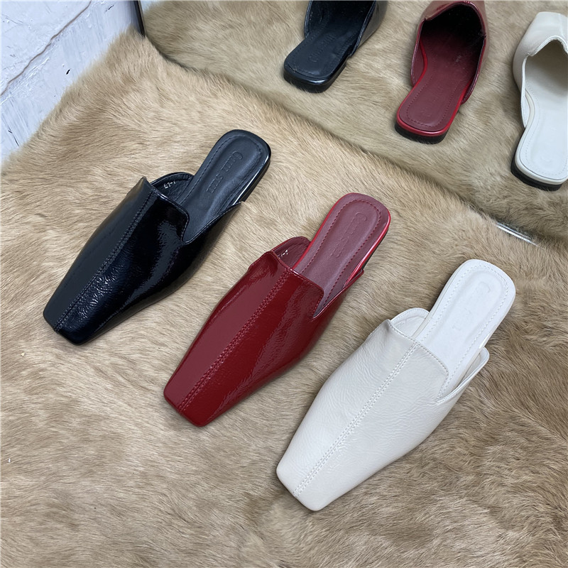 Net red Axi brother with the same witch Baotou drag chic Korean square head patent leather sandals and slippers lazy red Muller shoes