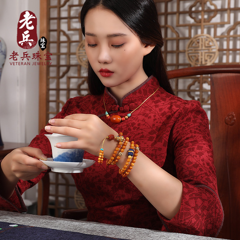 Handed down antique old beeswax bracelet worry-free red leather fidelity old wax cake bracelet ball live special shot 27