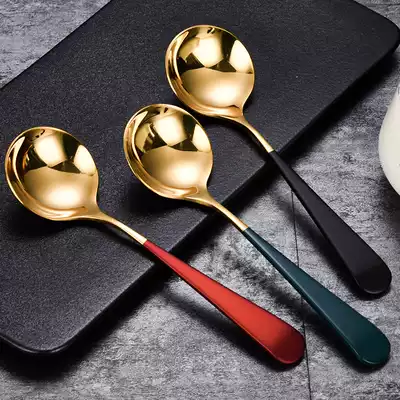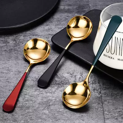 304 stainless steel spoon home creative cute spoon long handle round head Korean children baby eating spoon