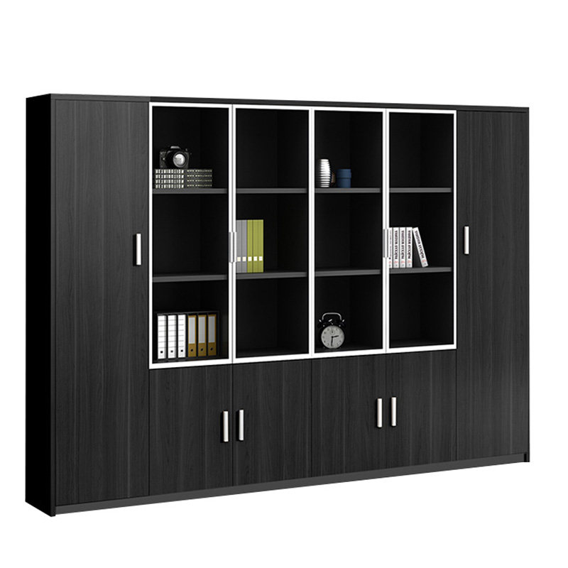 Wooden file cabinet storage cabinet can be locked office glass door file cabinet storage black relief office bookcase