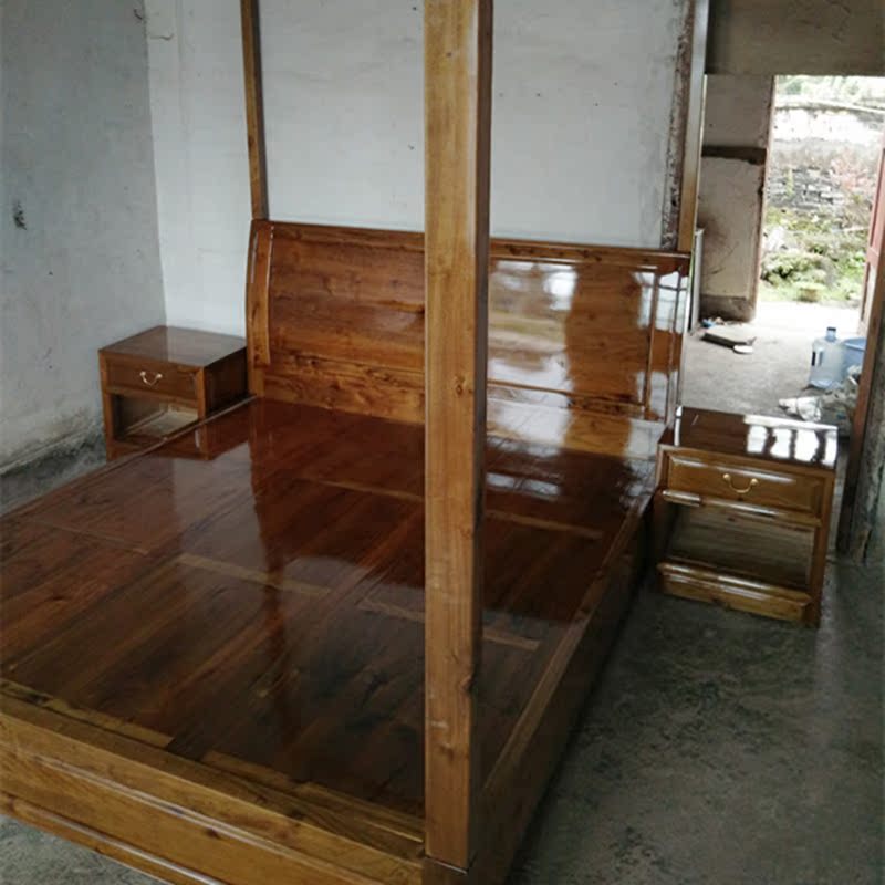 Nan Wooden Sichuan leaflets Machilus solid wood furniture 1 8 meters Chinese nanmu bed bedroom full of real wood
