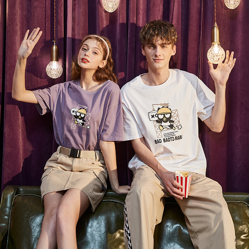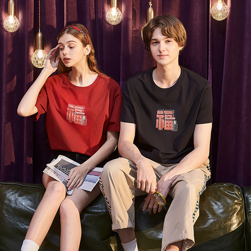 100 yuan 3 pieces]Tang lion 2021 lovers summer new short-sleeved T-shirt men's pure cotton round neck ins trend half sleeve