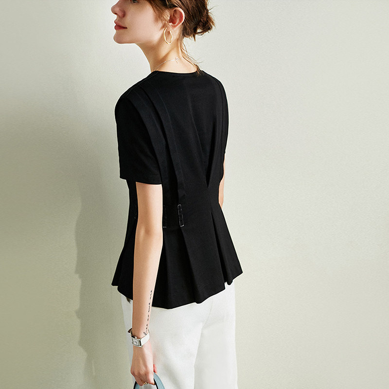 D Home Workplace Strength Small Brute Waist Oceanic Pie Color THREE COLOR PURE COTTON T-SHIRT WOMAN MW23101