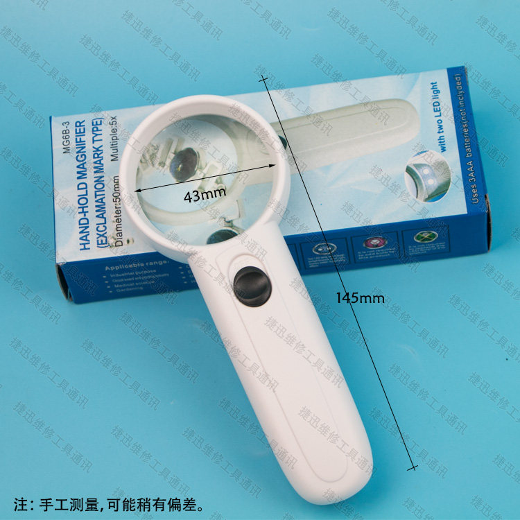 5 times high-definition hand-held magnifying glass with LED light elderly reading newspaper jewelry appraisal mobile phone maintenance magnifying glass