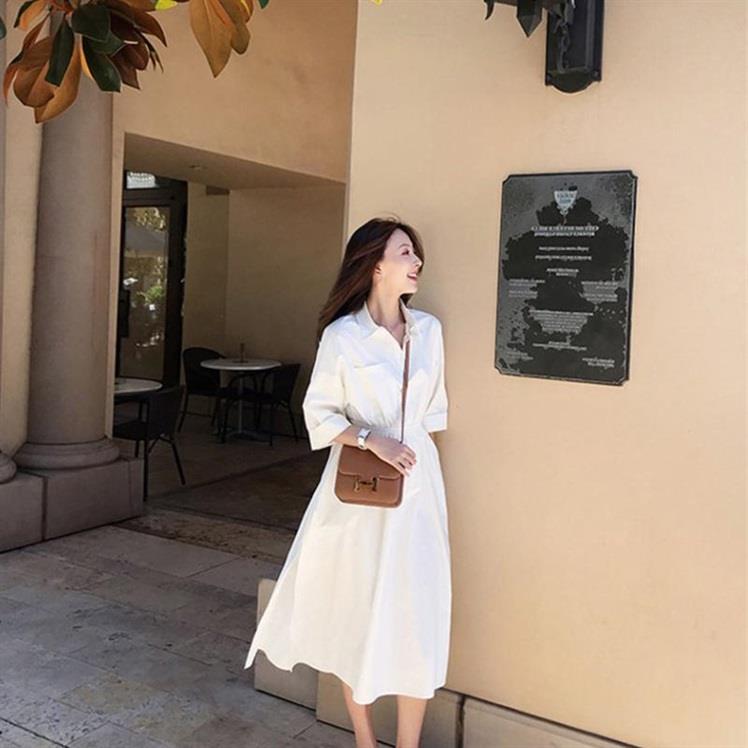 Lecea Alice white dress 2023 new French niche gather a long beach skirt