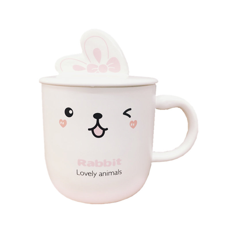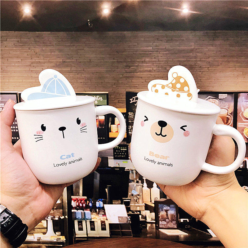 Korean version of cute cute pet ceramic mug mug with lid and spoon female student fresh milk coffee tea cup water cup