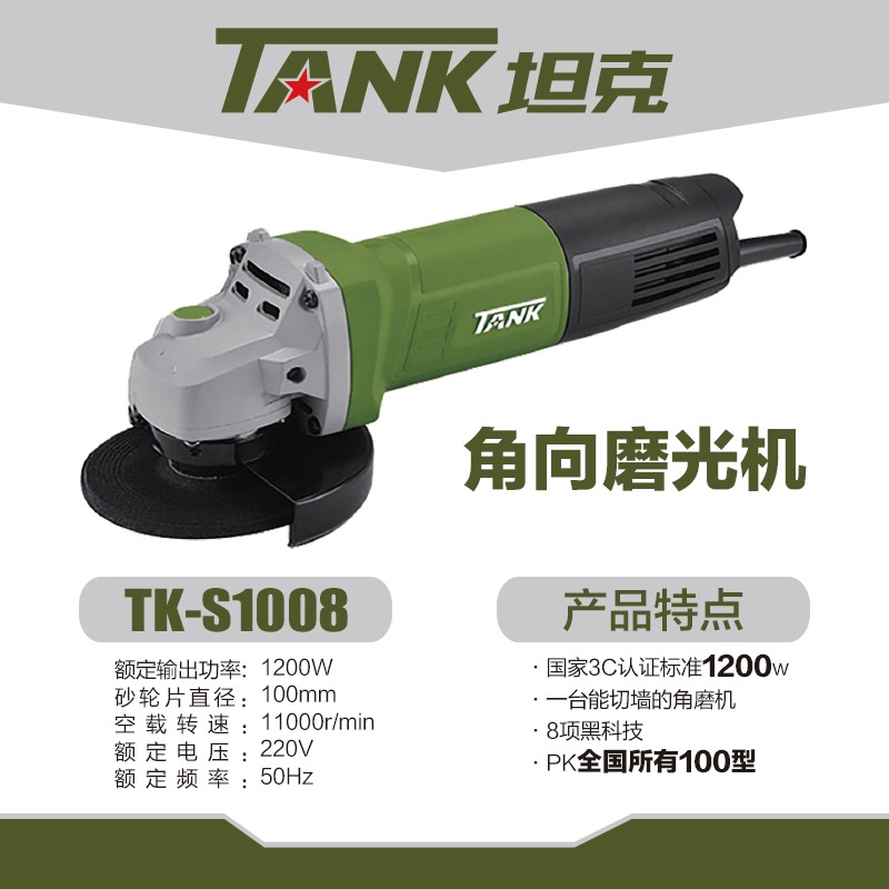 Tank angle grinder A series 1200W high-power small waist fuselage AS1006 S1008 cutting grinder