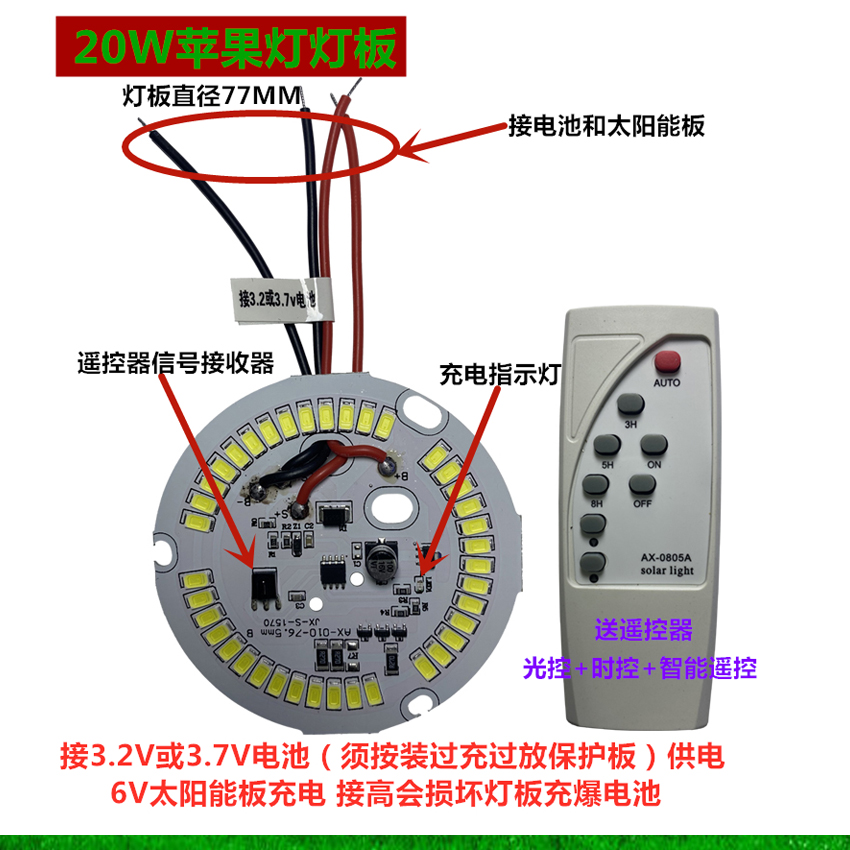 Solar lamp control board 3 2-3 7V suction top light round light source plate Apple lamp repair wick assembly accessories