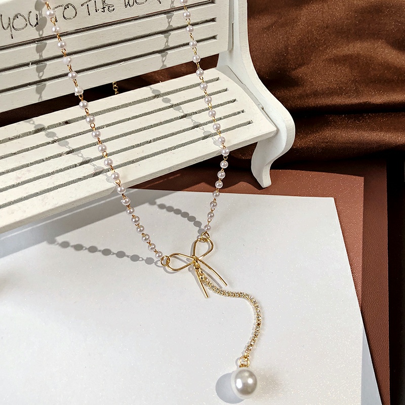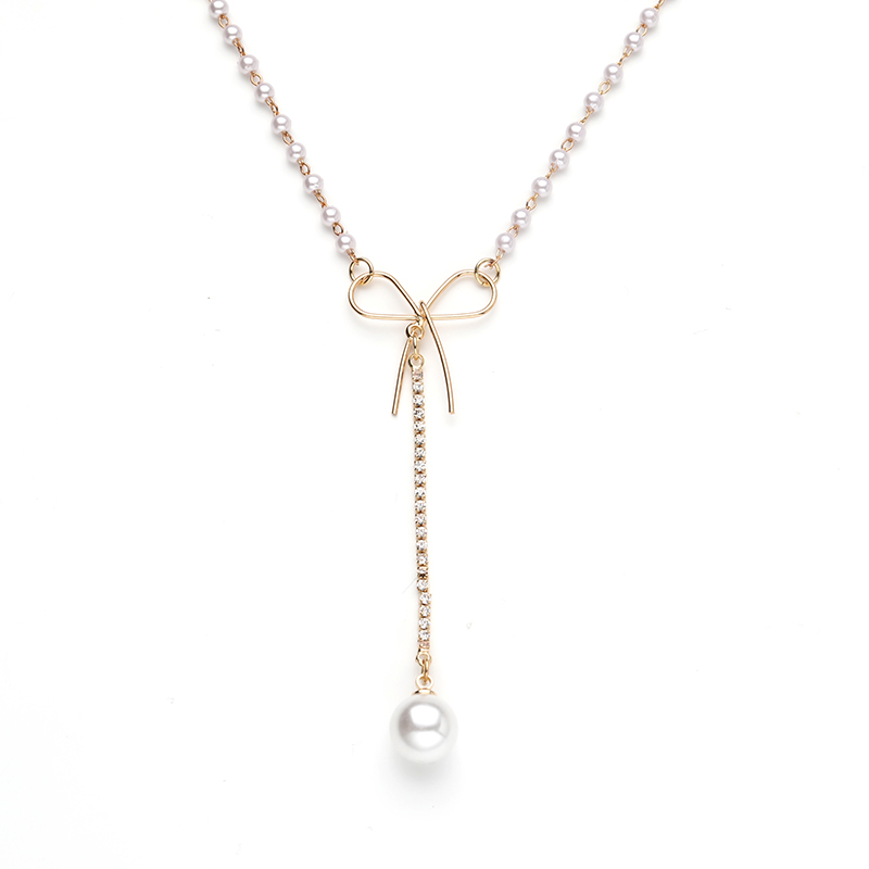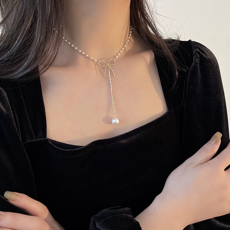 Beaded Bow Tie Necklace Triple Bay Beads Zircon Stone Necklace Butterfly Knot Beaded Pearl Necklace Beaded Gold Pendant Necklace Silver Beaded Necklace Portrait Pendant Necklace