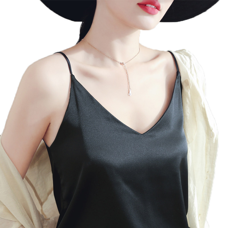 Camisole women's 2021 summer with a small suit with a base black loose silk top strapless sexy outside wear tide