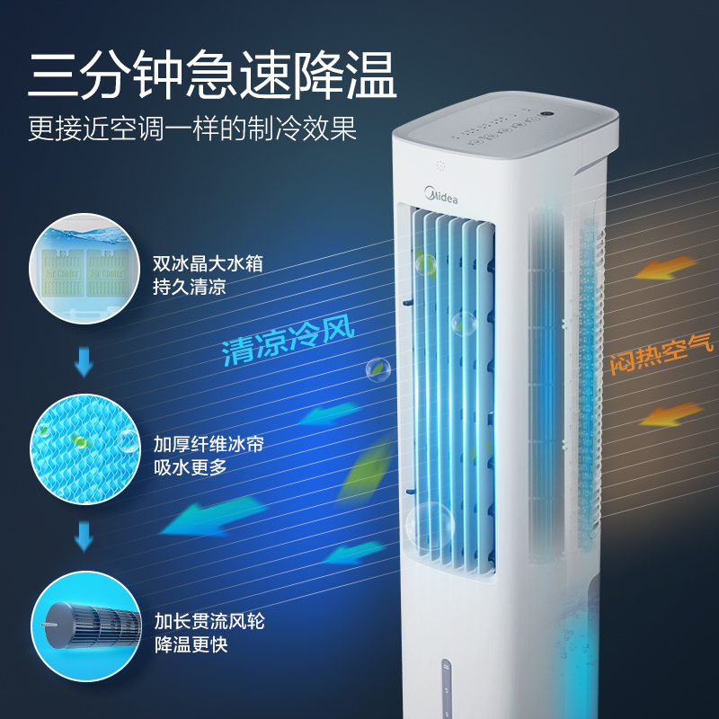 Midea air conditioning fan cooling fan home air cooling mechanism cooler small air conditioner air conditioning dormitory mobile electric fan