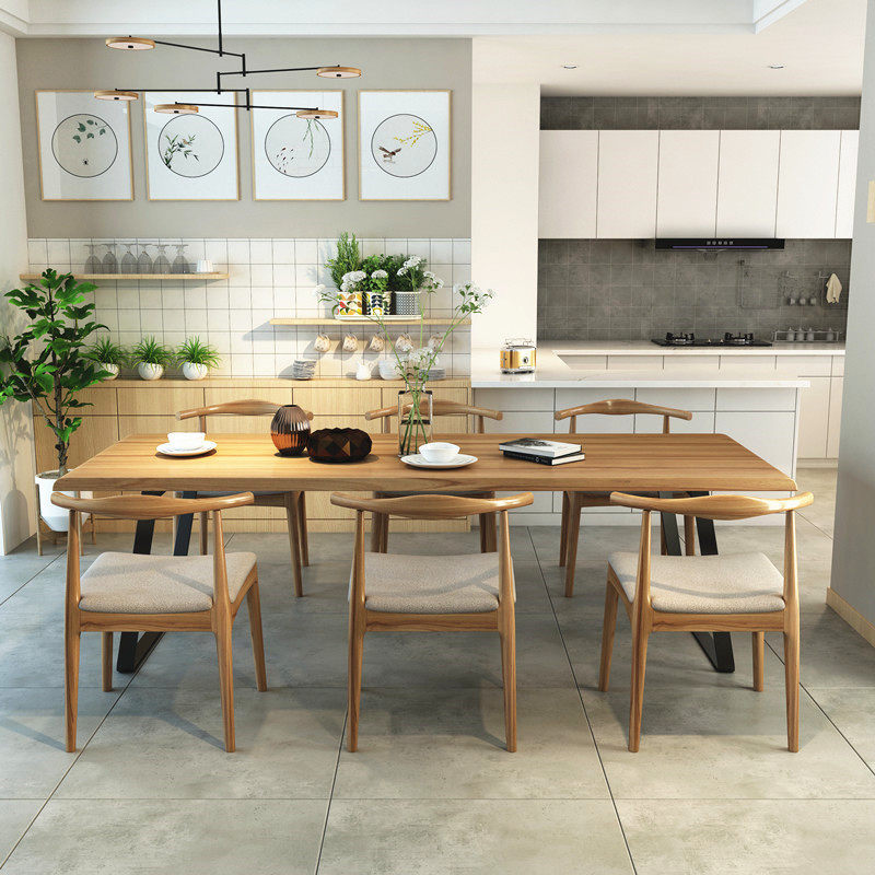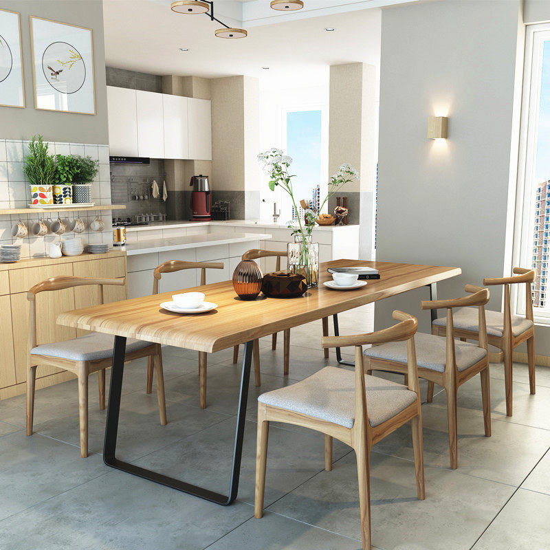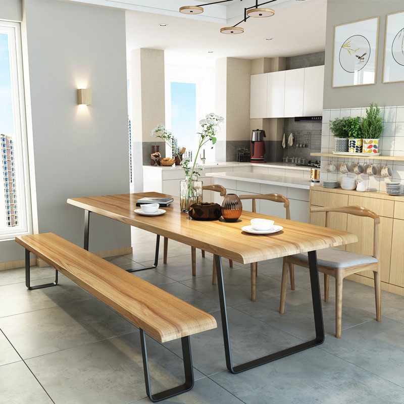 Nordic dining table and chair combination solid wood loft wrought iron retro desk long table conference table designer workers