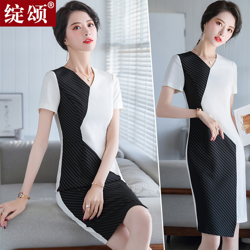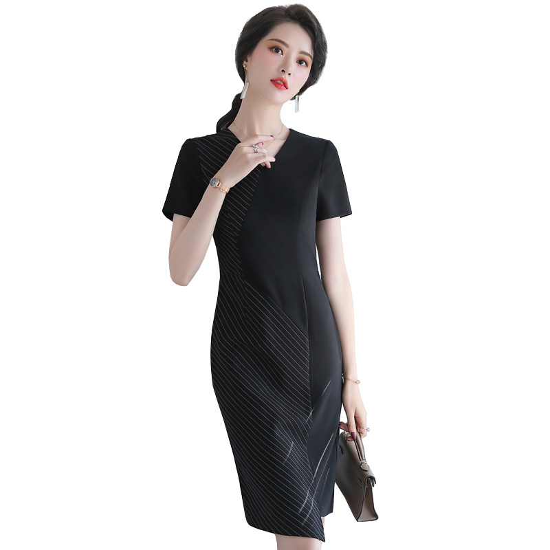 Striped Ocean Dress Women's Summer New Work Clothes Temperament Fan Fashion Irregular Bag Hip Beauty Salon Skirt