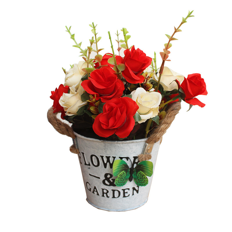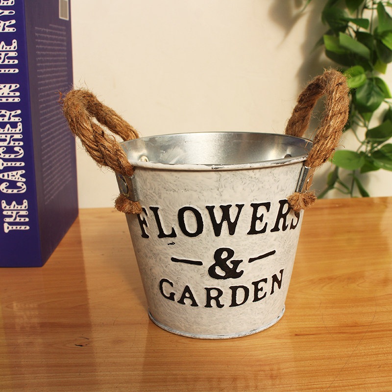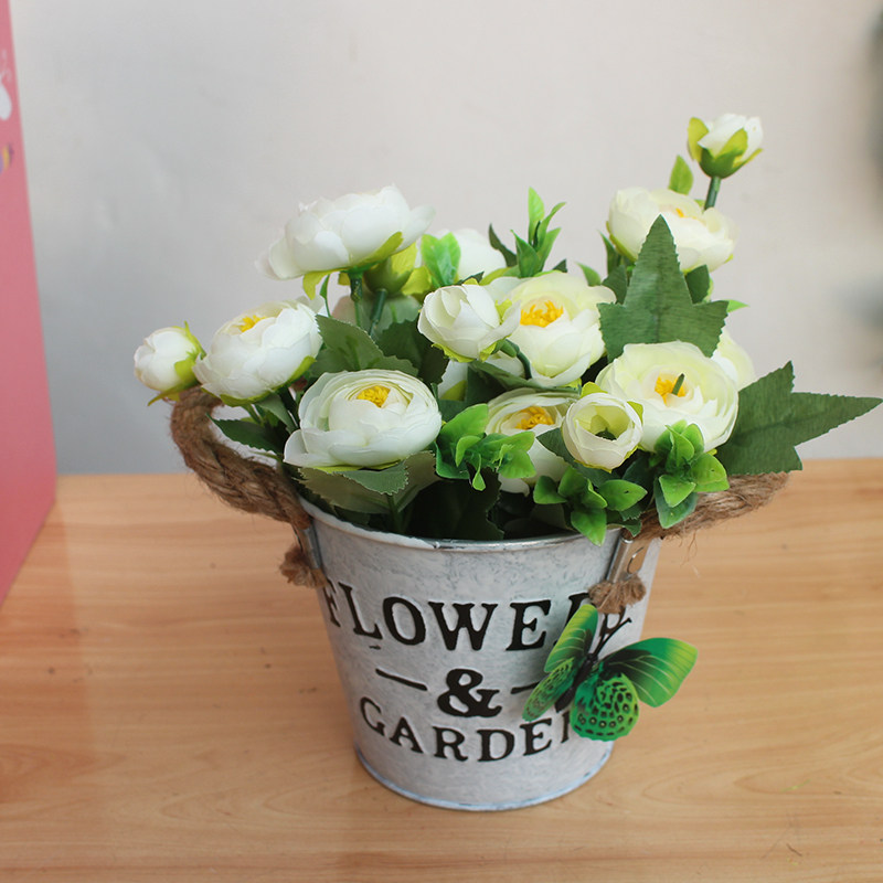 Sheet iron planter sheet iron sheet small flower bucket waking flower barrel drying flower barrel home multi-meat emulated floral woven table top decoration pendulum decoration