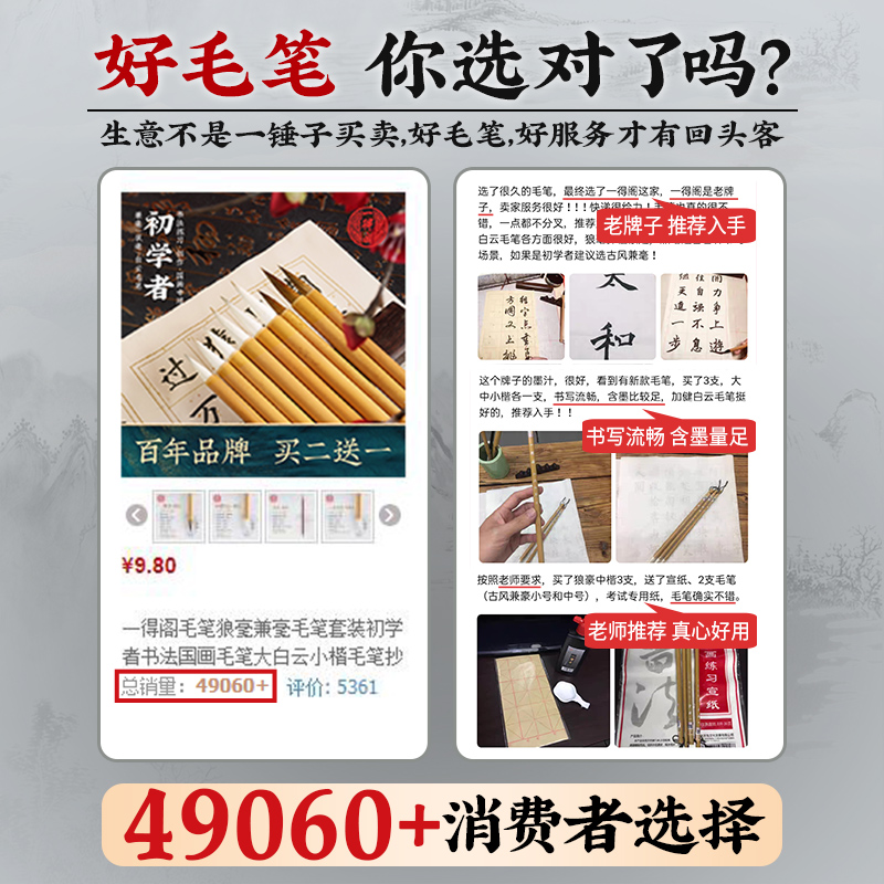 Yidege brush wolf hair and hair brush set beginner calligraphy French painting ink painting Dajia Jian Baiyun small regular script script copy high-end professional farming pen Zhuang study four treasures Shanlian lake pen