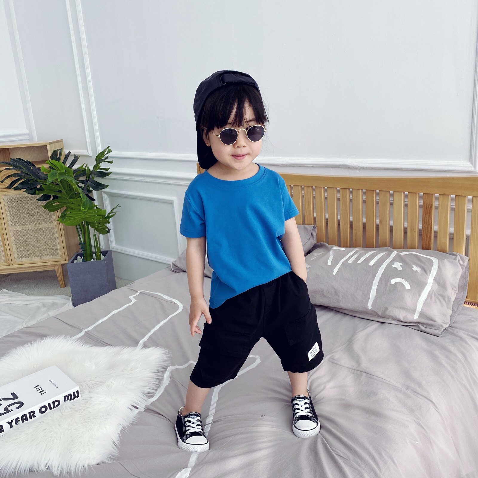 Children's solid color short-sleeved Ding Dingjia children's clothing Korean version of the all-match solid color T-shirt children's baby candy color half-sleeve T-shirt