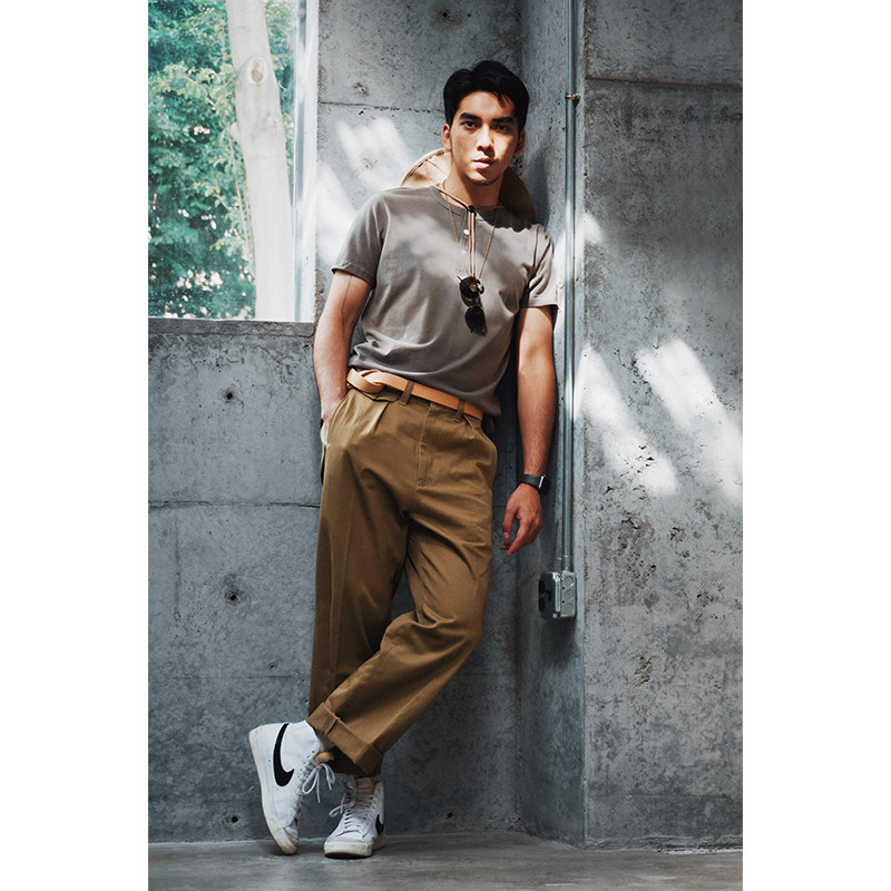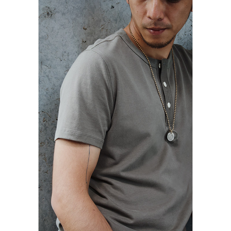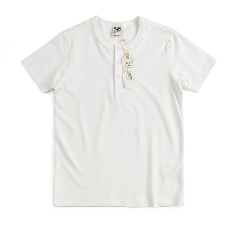 VINTAMERI Xinjiang Changsuede Cotton Three-Bench Weights 280 gr Retro Click Henry collar pure color short-sleeved T-shirt