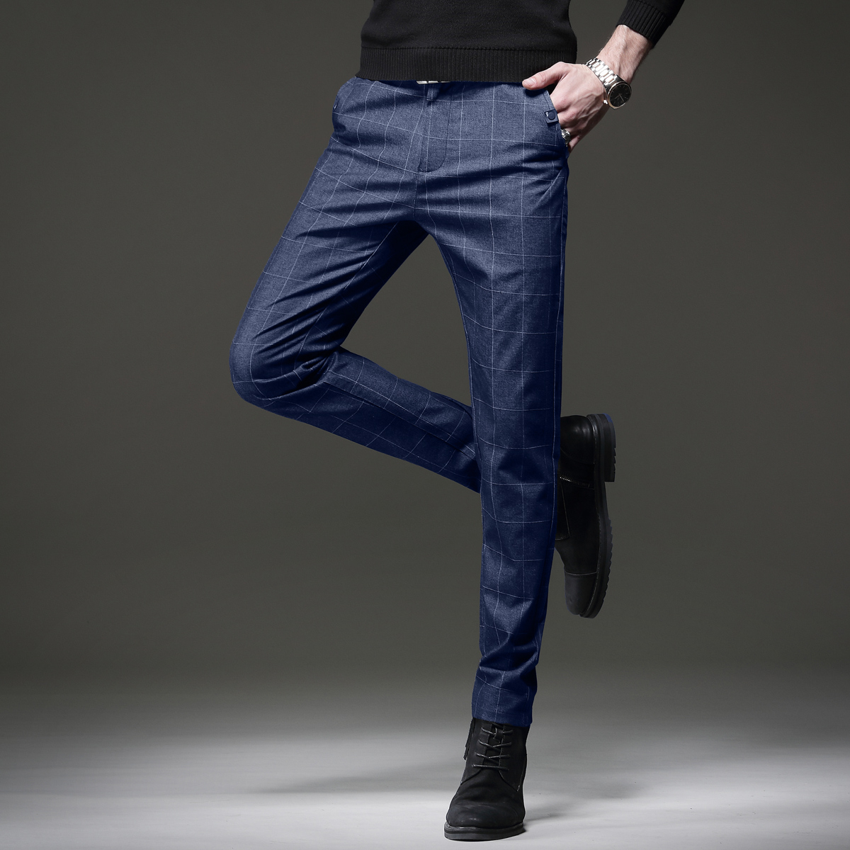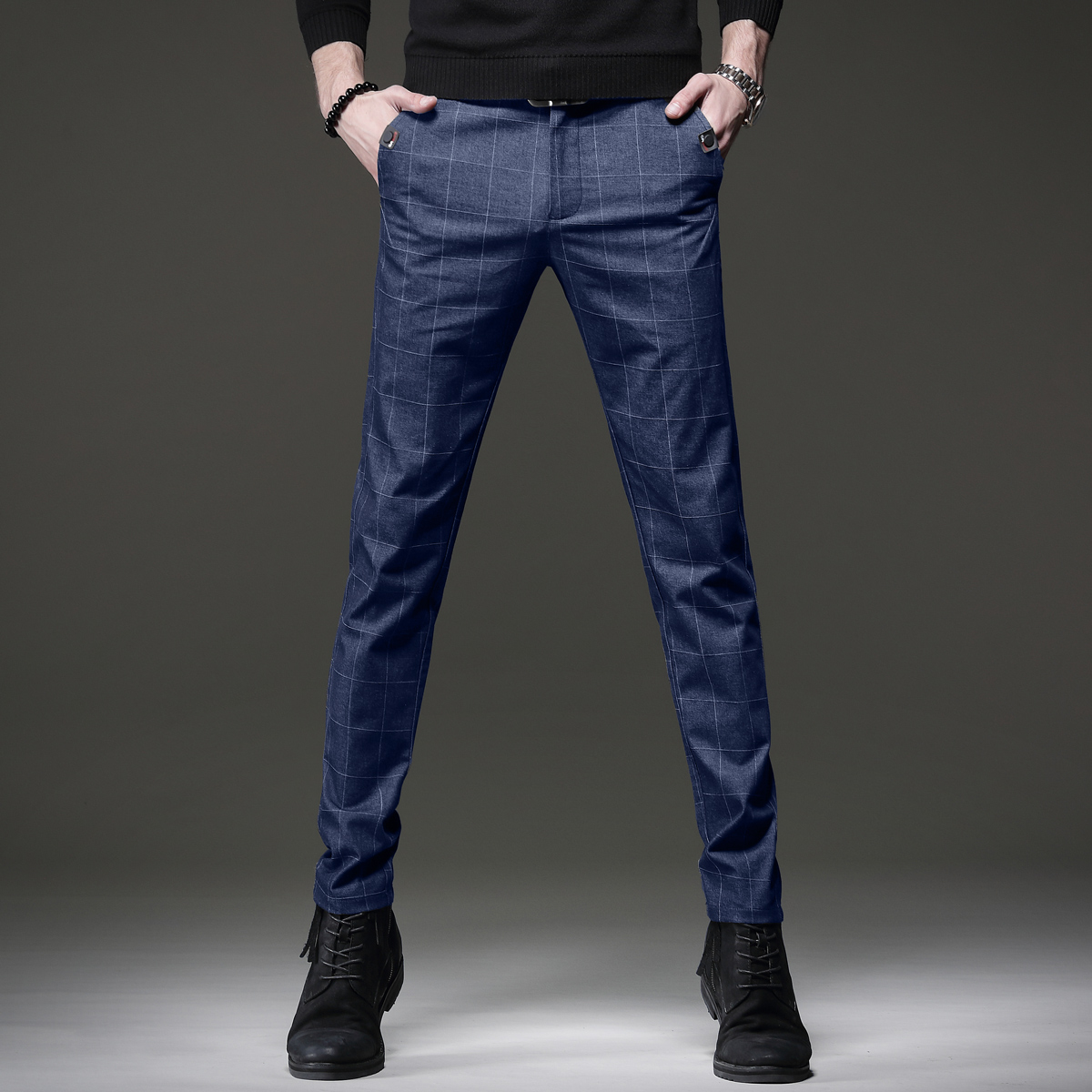 Expensive color summer thin plaid casual pants men's fashion brand stretch pants Slim cigarette tube pants men's business trousers