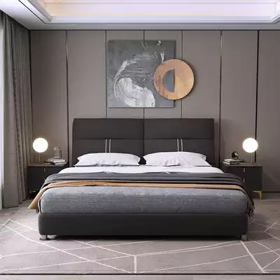 Nordic Wood cloth bed simple modern master bedroom double bed small apartment removable cloth bed soft storage wedding bed