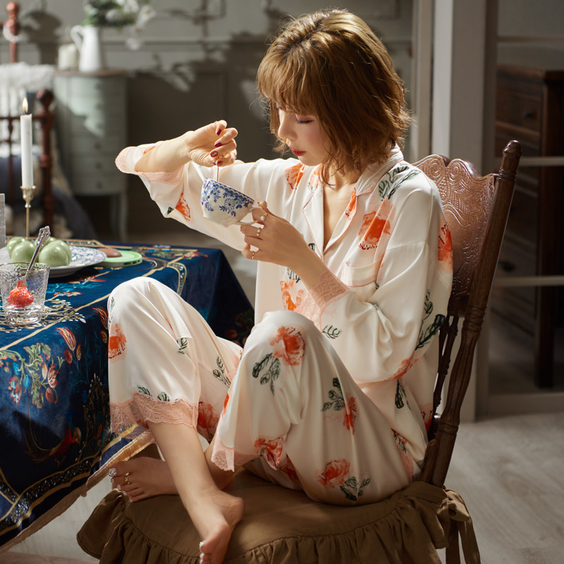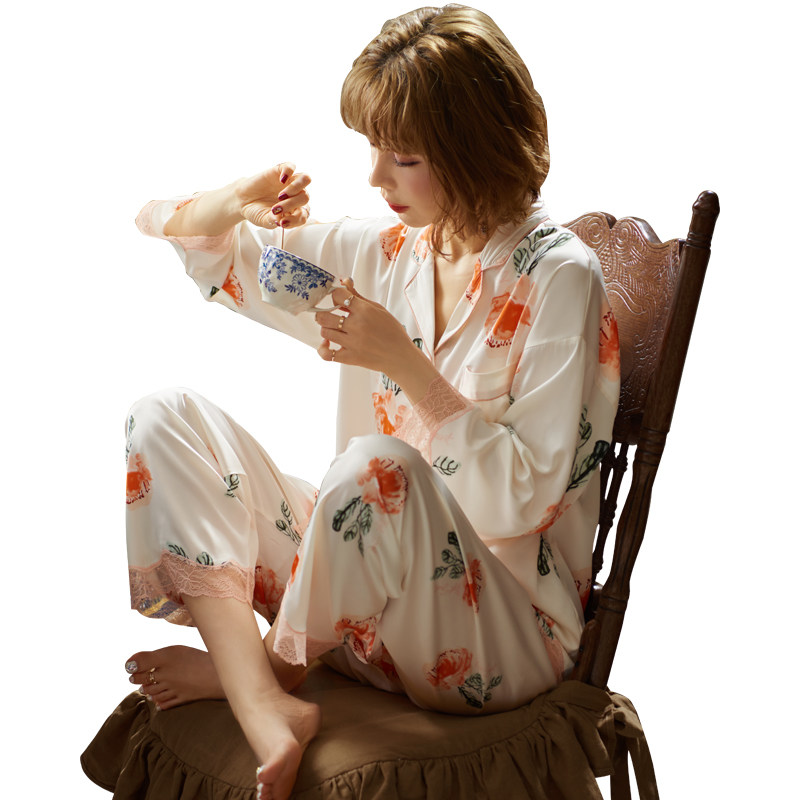 Japan Gp Pyjamas Women's Spring Autumn Ice Silk Summer Thin sexy online red printed home clothes