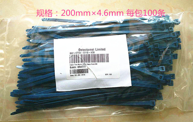 Metal detectable blue tie - tape Nylon bundle with plastic jack strand wire strand X - ray visible