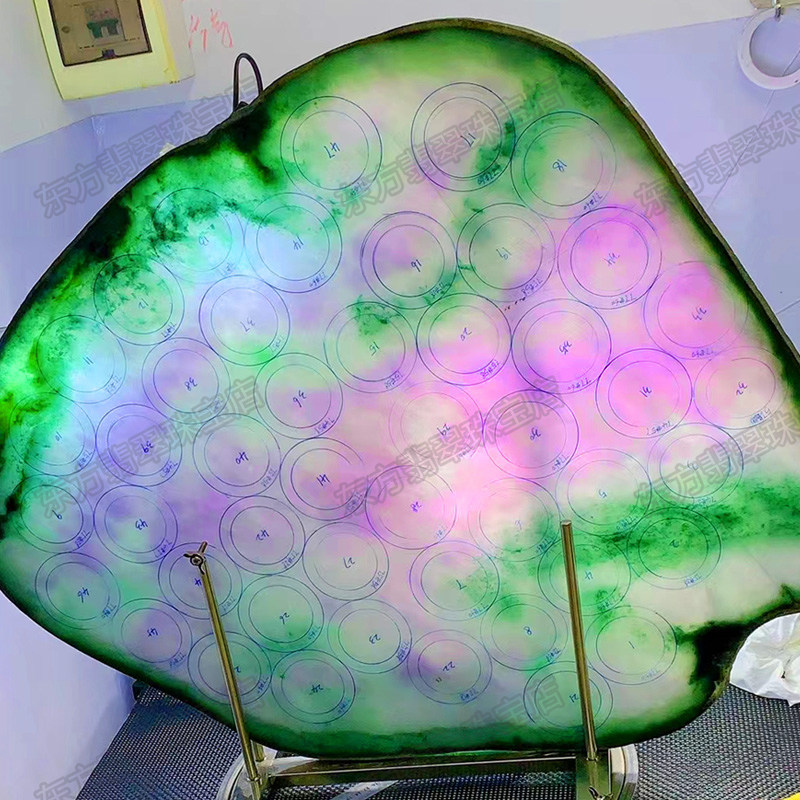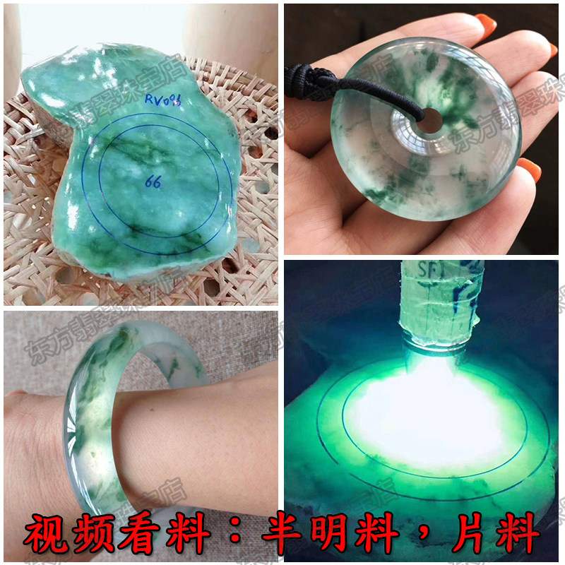 Natural jadeite raw stone semi-clear material ice species jade bracelet sun green spring color yellow jade floating flower Burmese jade customization