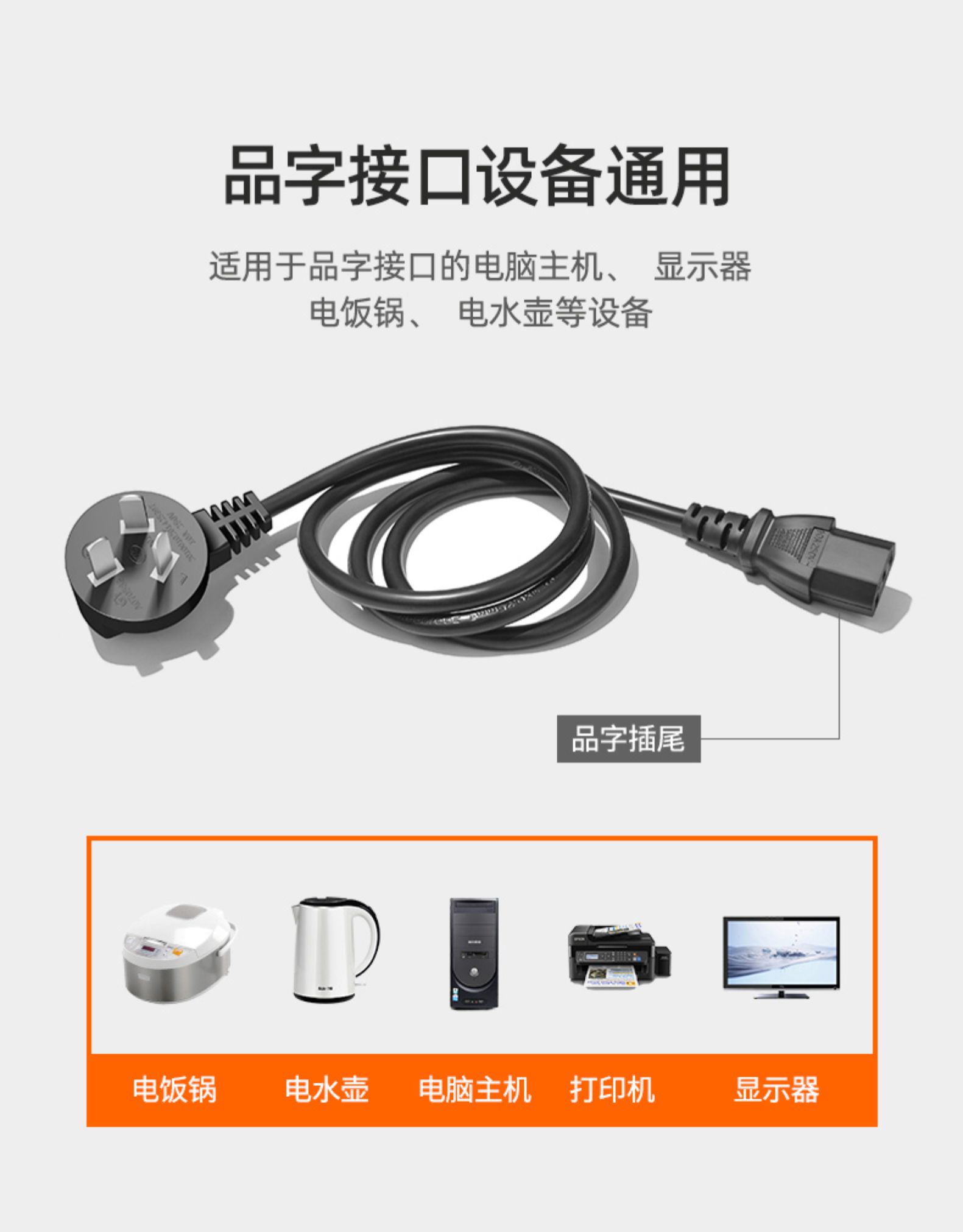 Duplicator power cord Desktop computer power cord three-hole printing host rice cooker kettle monitor screen