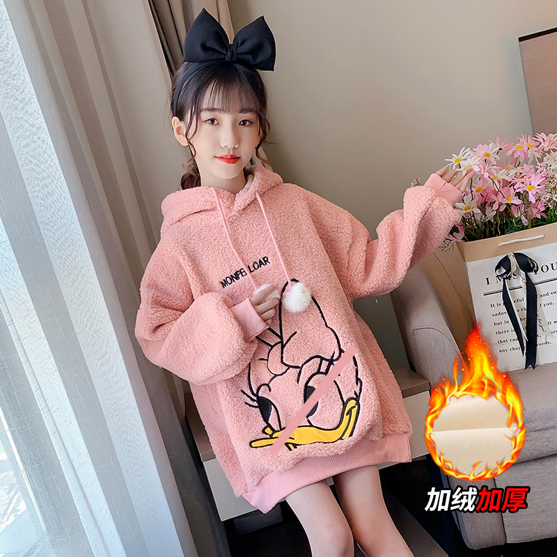 Girl Autumn Winter Dress Long Sleeve Thick Cotton T2020 New Fur Coat Mesh Red 7 Little Girl 8 Ocean Velvet Thickened 10 years old