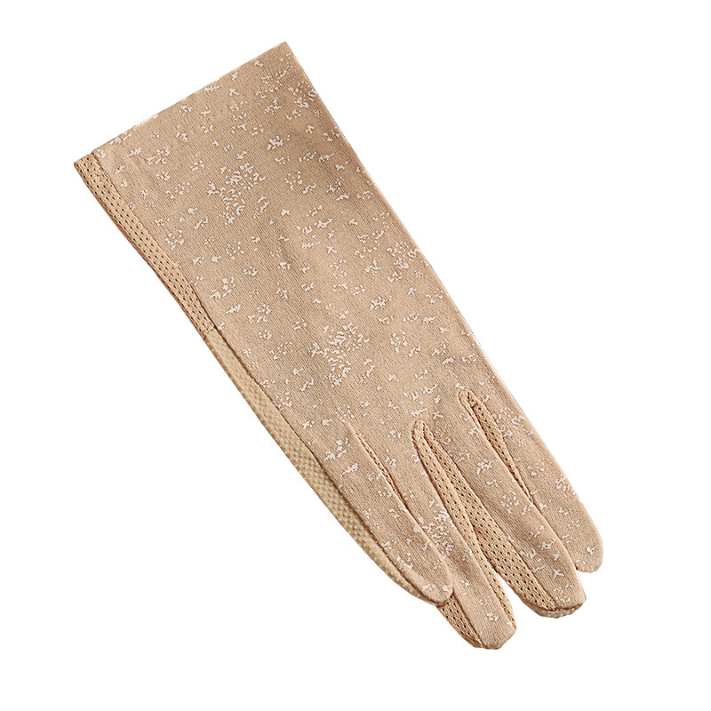 Spring and summer sun protection gloves women's riding and driving pure cotton thin section floral anti-ultraviolet anti-slip touch screen short gloves