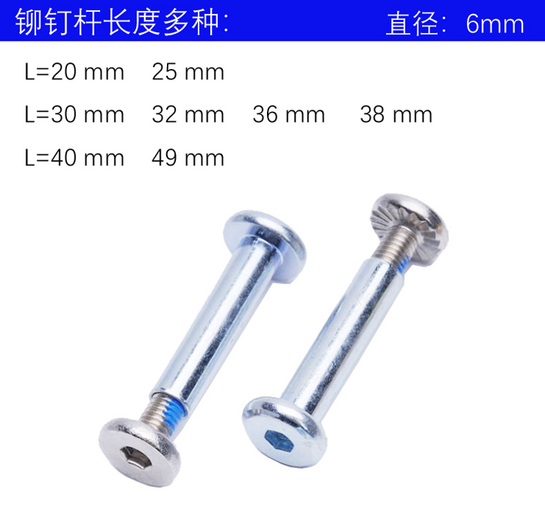Long rivet primary-secondary rivet stainless steel screw nut inner hexagon stud luggage wheel fastener pair lock