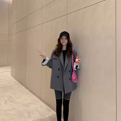 Socialite casual gray temperament English style small suit 2021 spring and autumn loose Korean version of High sense suit jacket women