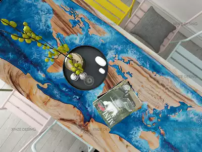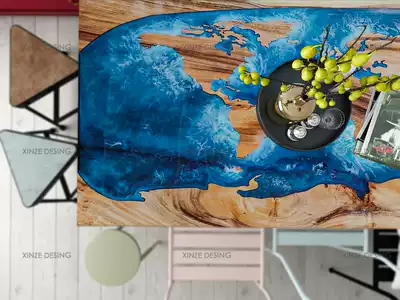Simple black walnut wood resin river table personality creative Net Red office leisure resin map table xz