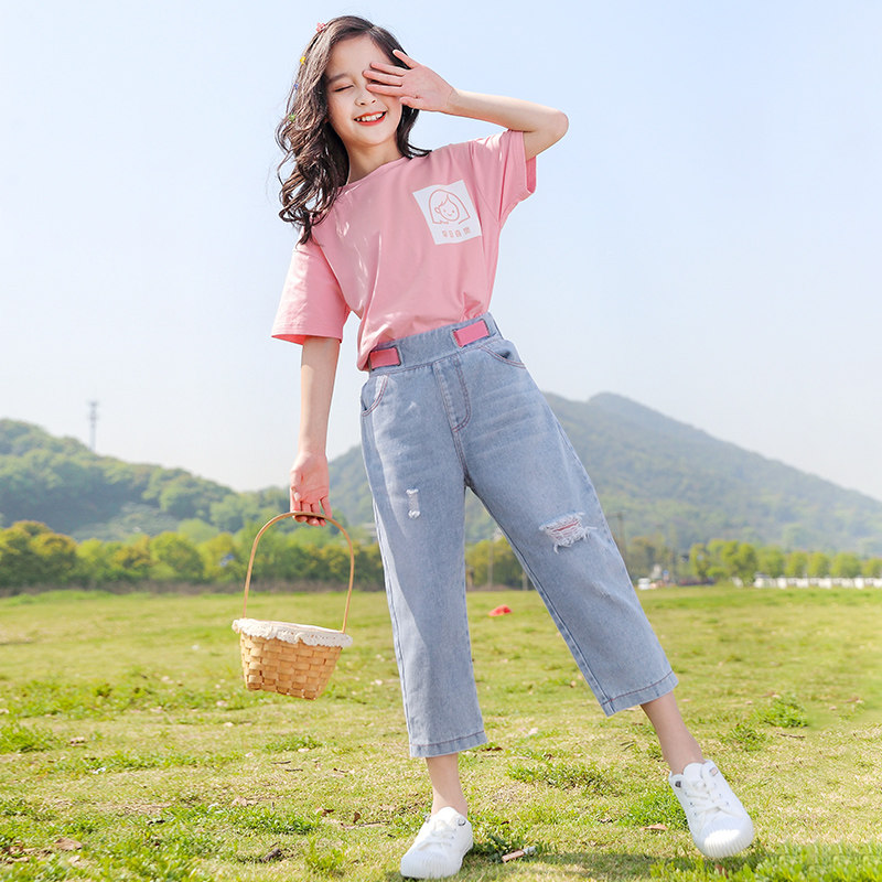 Girls summer clothes 2022 new net red suits Western style summer style 12 fashionable middle-aged children ten-year-old girls summer clothes