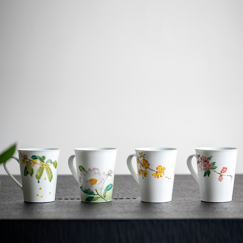 Mountain Room Flower Cup Series Hand - drawn ceramic mug household creative water cup birthday present cup for male
