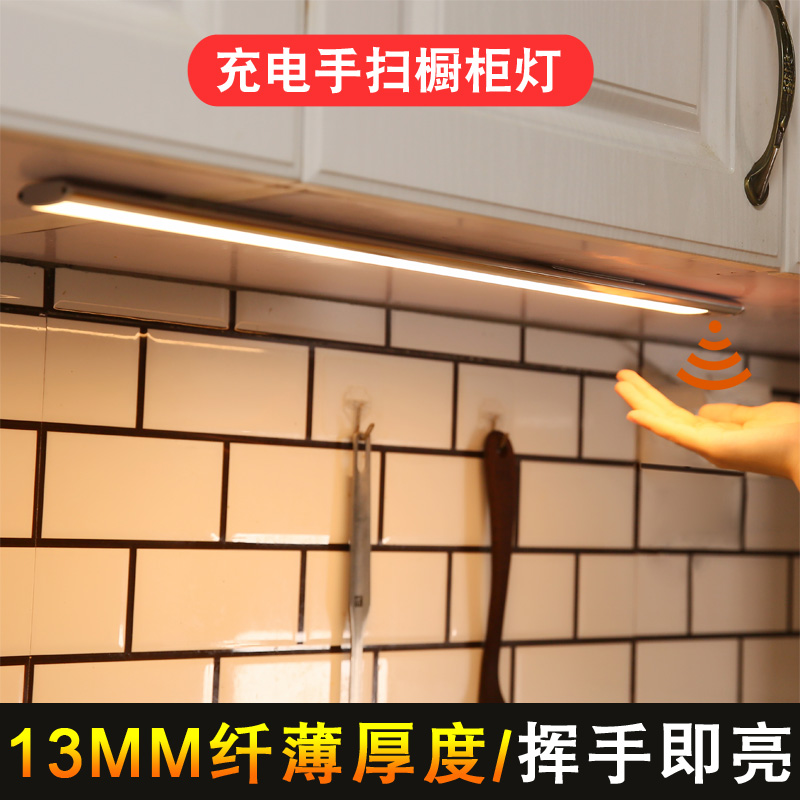 Hand sweep induction cabinet light rechargeable kitchen cabinet bottom hanging cabinet under led light bar wireless wardrobe light waving light strip