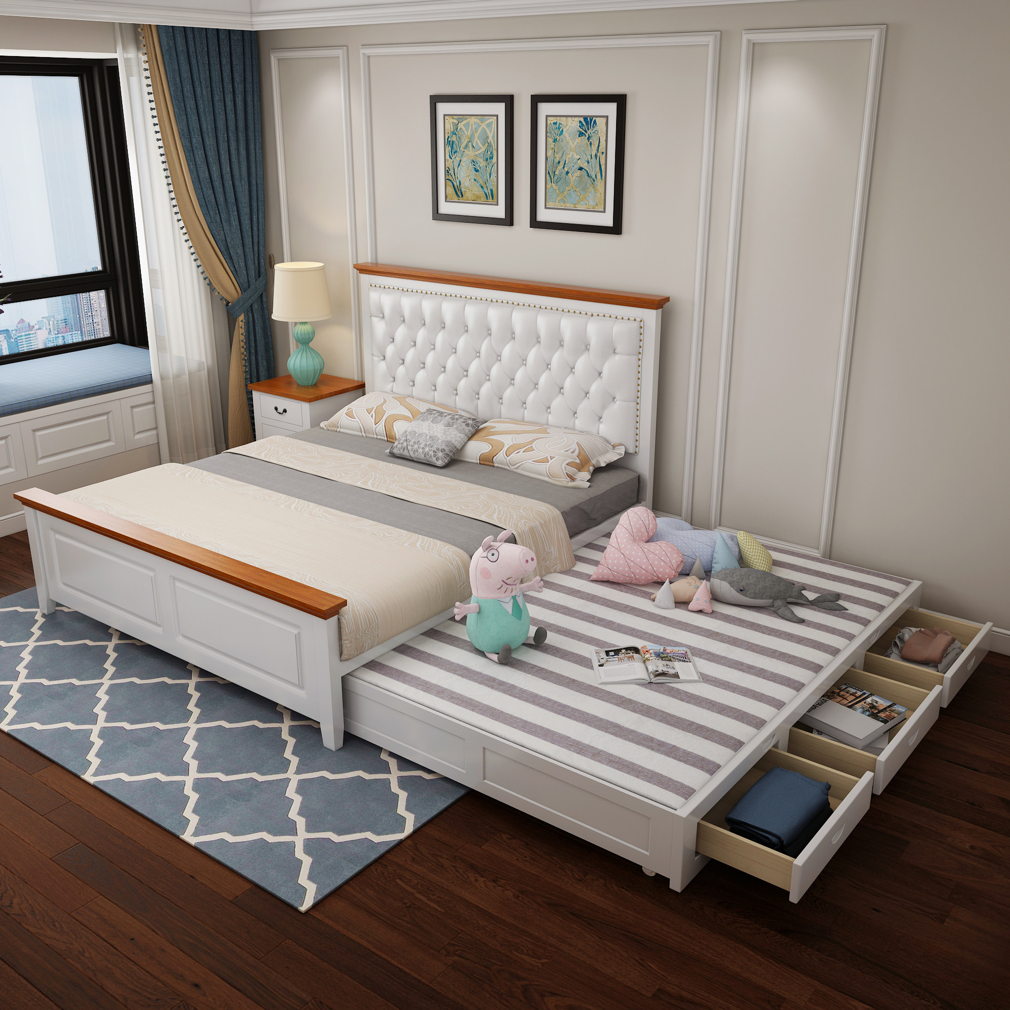 Soft bag solid wood 1 8 m double bed storage tug drawing drawback bed primary-secondary drawer bed oversized bed 200 x 220