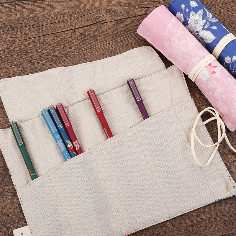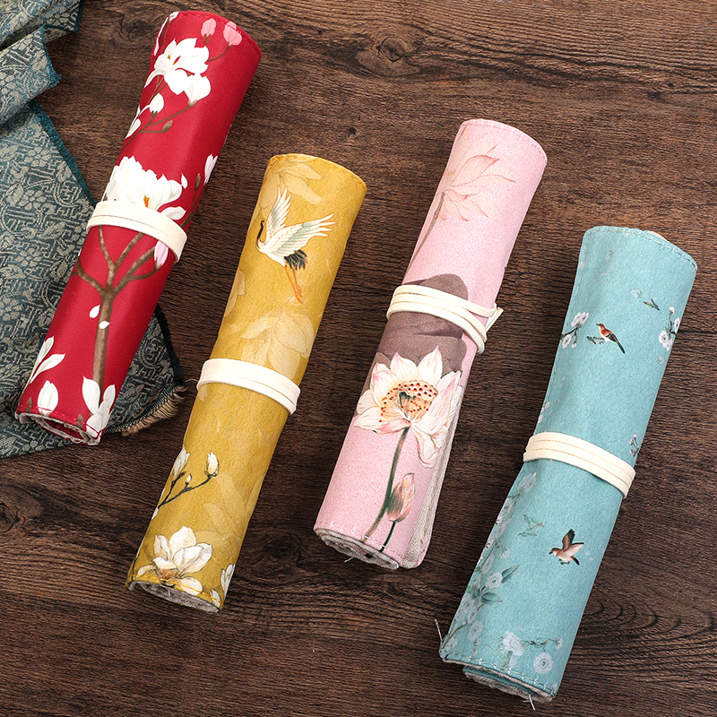 Chinese Palace Court Wind Retro Art Roller Shutters Pen Bag Gift Box Set Fairy Crane Middle Sex Pen Cotton Linen Sign Pen Containing Bag Cloth Art pen box accompanied by hand creative student stationery send classmate's birthday present