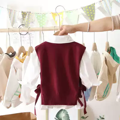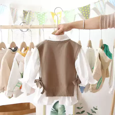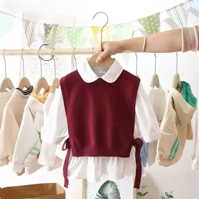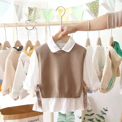 2021 spring new girl suit Net red female baby Foreign pie knitted vest shirt two-piece Korean fashion