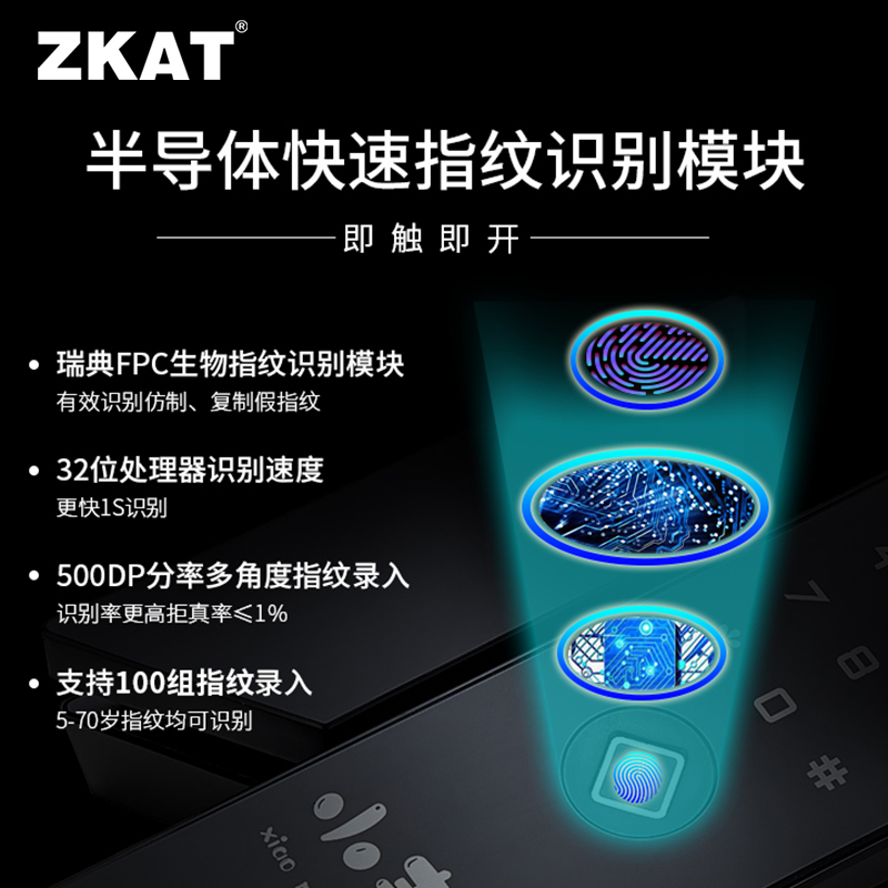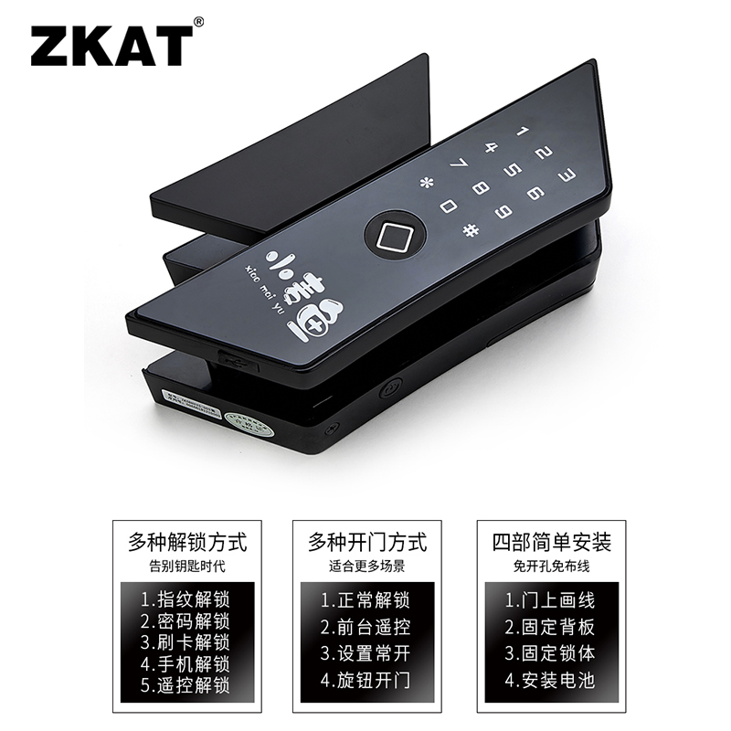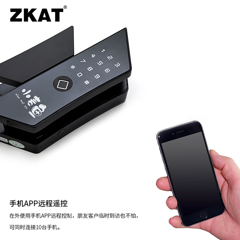 ZKAT outdoor waterproof glass door fingerprint lock double switch intelligent electronic code lock free of wiring shop access lock