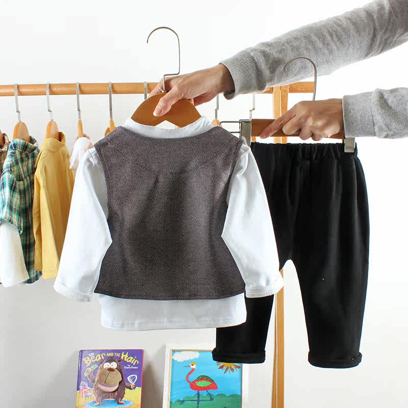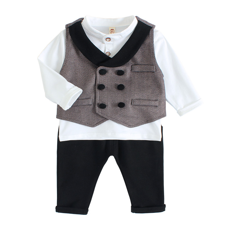 Boy baby suit three-piece spring and autumn new trendy children's short vest clothes 1-year-old infant catch Zhou Liyang school small 3