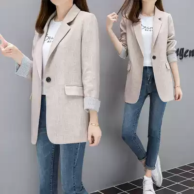 Net red small suit jacket female Korean loose 2021 spring and autumn new mid-length British style casual suit top trend