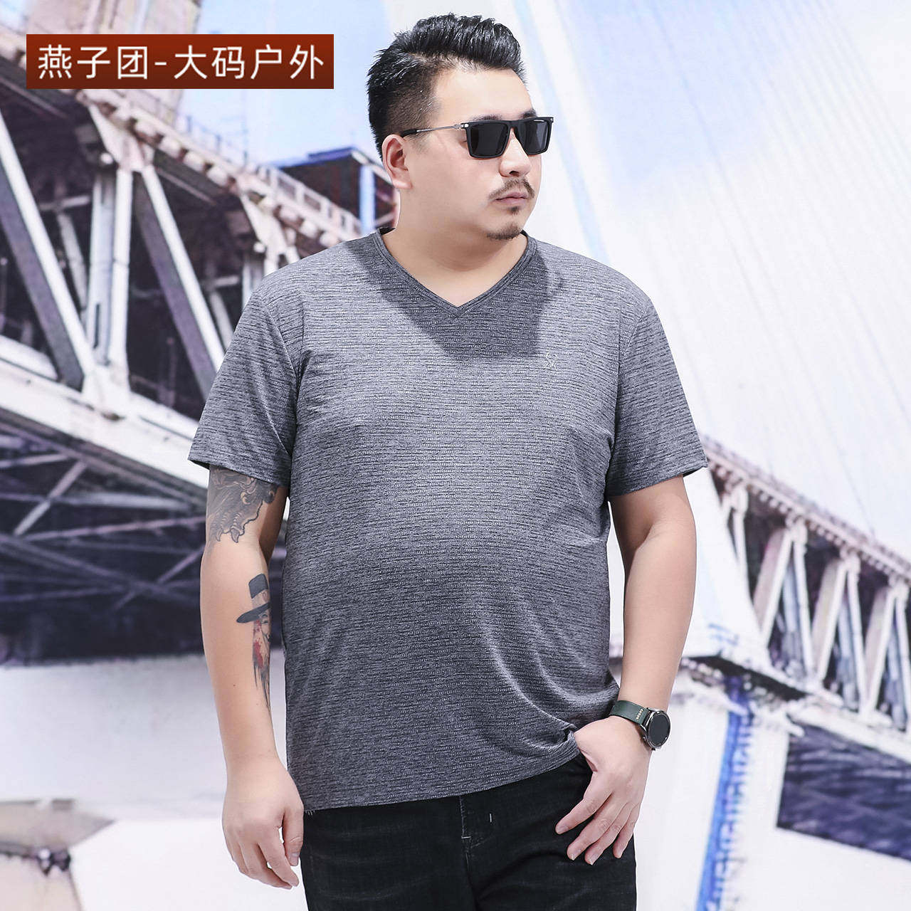Summer outdoor sports short sleeves T-shirt male thin section ice silk running fitness speed dry clothes easy to increase code V collar T-shirt