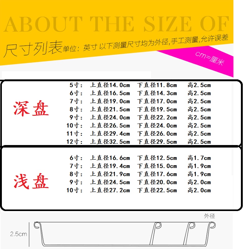 5-inch non-stick deep pizza plate6-inch non-stick shallow pizza plate6-inch non-dark pizza plate7-inch non-stick shallow pizza plate7-inch non-dark pizza plate8-inch non-stick shallow pizza plate8-inch non-dark pizza plate9 Not sticking an inch