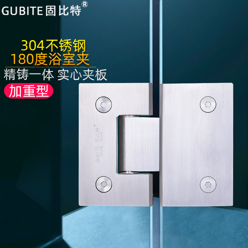Bathroom glass clip 304 stainless steel 180-degree shower door hinge hinge solid door hinged chain folding page