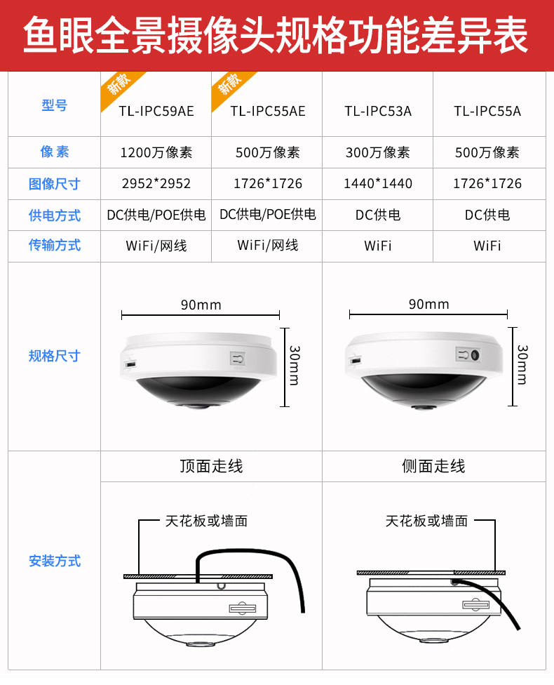 TP-LINK indoor 1200W panoramic wireless network camera HD head wifi mobile phone remote APP monitor home shop tplink fish eye 360-degree two-way voice T
